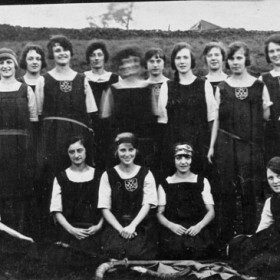 New Mills Sunday School Hockey team organised by Reverend Buckley (Primitive Methodist minister) for New Mills girls from any denomination, around 1920.