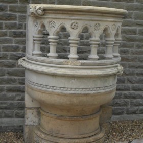 The 13th century style stone pulpit and the font were carved by John Thompson of Peterborough. He worked on a number of important Victorian churches.