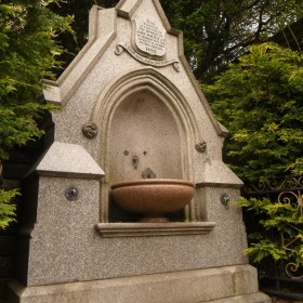 Mary had this drinking fountain built in memorial to John. It supplied free, fresh water at a time when few people in New Mills had water piped to their homes.