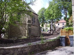 Starting the building work in May 2011. The digger is parked right where the Ingham Room now stands. The wall along the side of the site is missing in this image – it was dismantled to make room for the building works. The wall was eventually replaced in April 2012, nearly a year after it was removed.