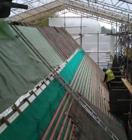 Repairing the roof – the roof timbers have been repaired and vapour barrier, insulation and counter-battening are underway. October 2011.